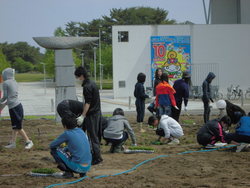 先週もお伝えしたはなまきUCさんを中心としたフラワーアート作成の事業で、予定通り5月24日(土)に花植えが行われました。