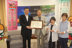 6月27日(月)に花巻市役所において、石鳥谷はたおり同好会会長の玉山様・会員の中野様・大峠様より、上田市長に寄贈いただきました。