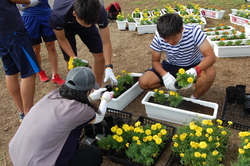 9月3日(土)に、花巻市総合体育館のロータリーで、花いっぱい運動が行われました。