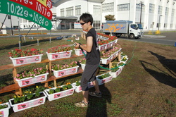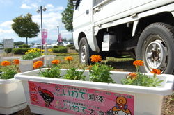 プランターに、花巻市実行委員会オリジナルステッカーを貼って・・・